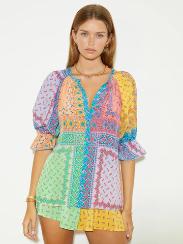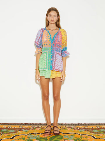 A saccharine dream of vivid pastels, Bon Bon’s summer-fresh mosaic of bisque orange, banane yellow, jardin green, azur and lilac blues is just ripe for seaside splendour.. Exclusively designed BOTEH print with engineered print placement.