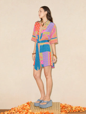 Rani, an audacious colour story artfully told by its Rajasthani-inspired patchwork across luxe silk and linen in flirtatious cuts that playfully skim the body