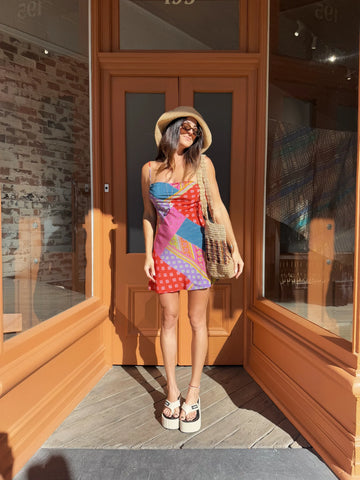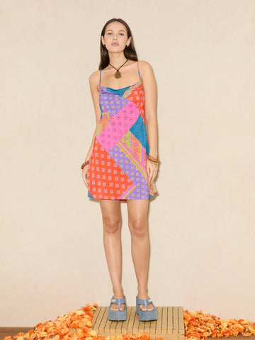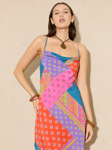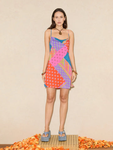 Rani, an audacious colour story artfully told by its Rajasthani-inspired patchwork across luxe silk and linen in flirtatious cuts that playfully skim the body