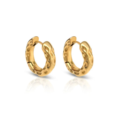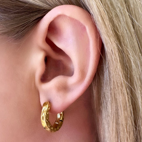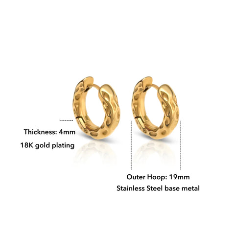 Intricately hammered hoop earrings, designed to make a bold statement and are a versatile addition for touch of edge and uniqueness to your activewear jewellery look.