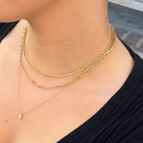 Inspired by the game of tennis, the lightweight figaro link 'Drop Shot' chain necklace is a comfortable piece to wear during even the most intense workouts or physical activity.