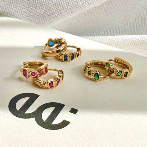 Our vibrant new Glory Huggie Earrings are designed to add a touch of colour and charm to your style.