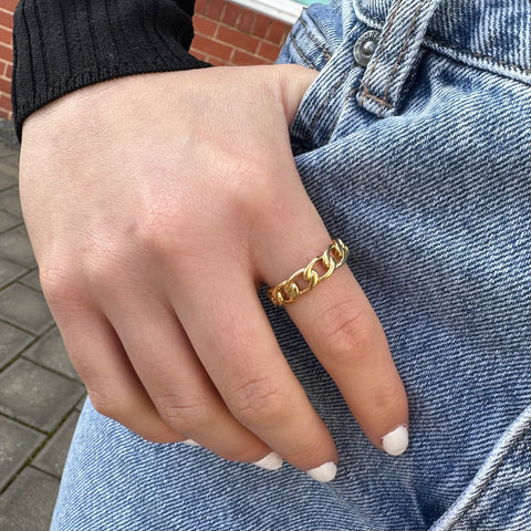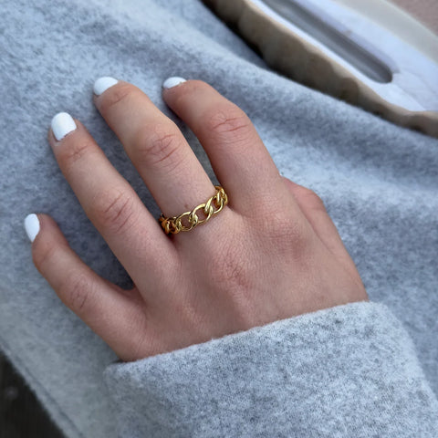 Experience the fusion of strength and sophistication with our classic cuban link style gold ring.