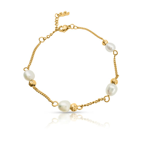 • Fine twist-style chain with four freshwater pearl beads + hammered gold balls