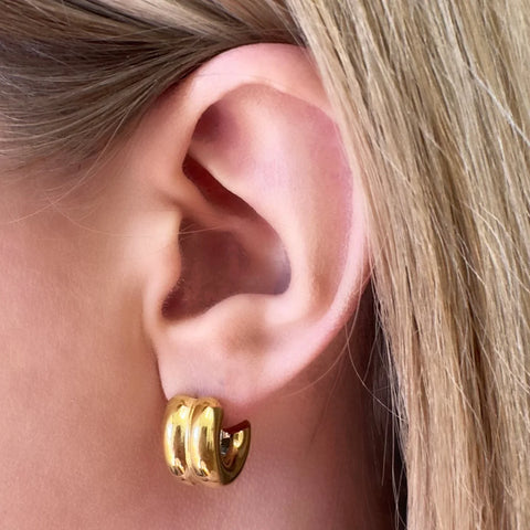 These captivating hoops captures the essence of sporty luxury, blending a bold silhouette with a distinctive twill pattern.