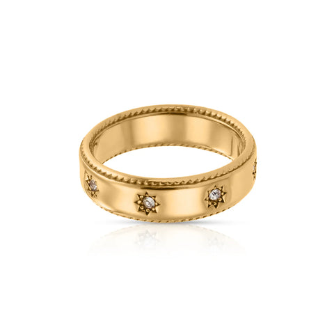 The Twilight Ring adds a refined, modern touch to your everyday style. Featuring delicate star accents with clear crystal zirconias, it is the perfect blend of elegance and contemporary design.