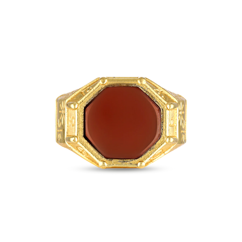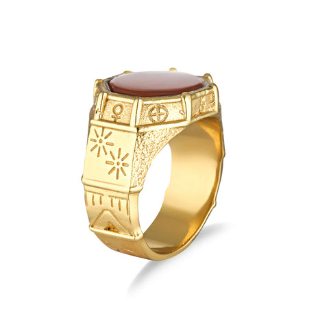 At the heart of this celestial wheel lies a radiant Carnelian gemstone, glowing with vibrant hues of vitality and creativity. Carnelian enhances the ring’s message of transformation and manifestation, inviting its wearer to harness the synchronicities in life and align with their highest path.