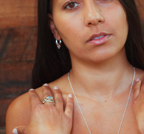 The empress weighted hoops are a gorgeous modern take on an ancient designed hoop. Easily worn everyday these little beauties have a bit of weight to them adding to the feeling of luxuriousness. They are perfect for when the Kyoti woman needs to be more subtle in her style, while still having your unique pizazz shining through.