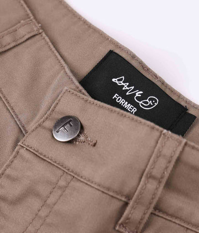 Featuring a fixed waist, signature Crux logo woven label on back pocket, double workwear pockets, and FORMER branded metal sha