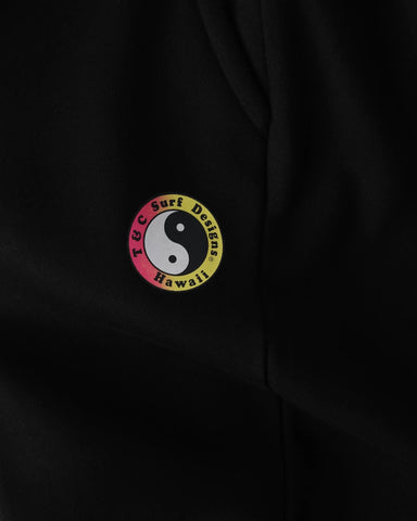 • Screenprinted T&C Surf Designs colour logo on left thigh