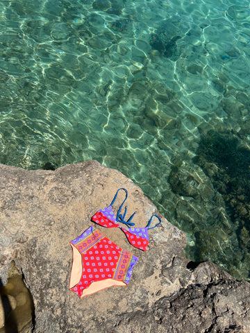 Rani, an audacious colour story artfully told by its Rajasthani-inspired patchwork across regenerated nylon in flirtatious cuts that playfully skim the body