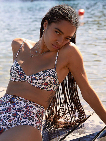 Hidden underwire bra shape with flattering neckline and bust panelling, in this seasons Verbena print. Featuring fine, adjustable straps and BOTEH clasp to fasten. Suits up to a C-cup.