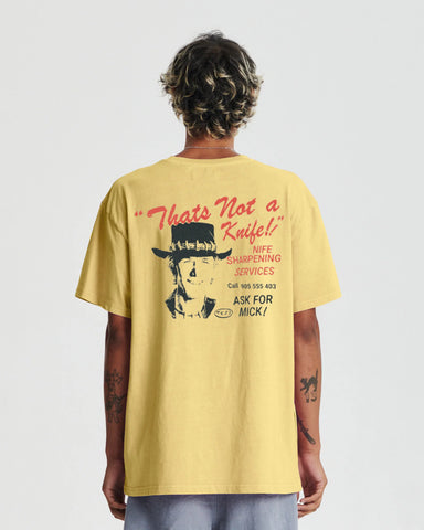 "The Sharpen Service Tee is made from signature 230 GSM cotton jersey, Solid dyed for a beautifully washed vintage look and feel. Featuring in-house designs, a new Critical Services never fails to offer effortless style with a creative edge."