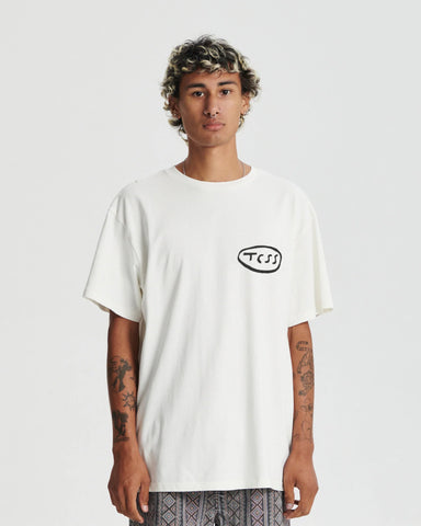 "The Sharpen Service Tee is made from signature 230 GSM cotton jersey, Solid dyed for a beautifully washed vintage look and feel. Featuring in-house designs, a new Critical Services never fails to offer effortless style with a creative edge."