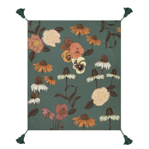 The Glades Picnic Rug is a must-have for outdoor and floral enthusiasts. Sharnee's fresh oversized, hand-drawn florals have been printed on our water resistant and fade proof 100% recycled PET, combining style with durability. Its waterproof underside ensures that you stay dry and comfortable whist picnicking and the large cotton tassels keep it in place. The woven carry strap makes it easy to carry, while the washable Wandering Folk jacron paper patch adds a vintage flare.
