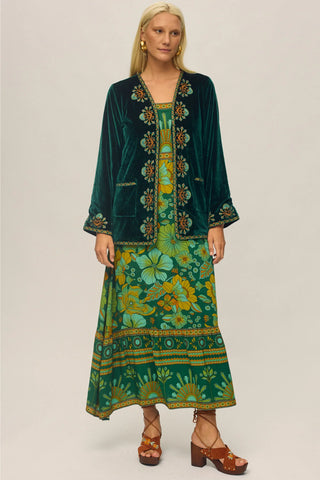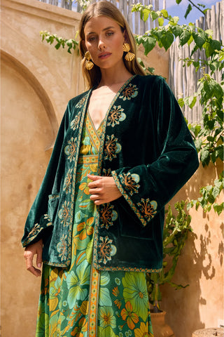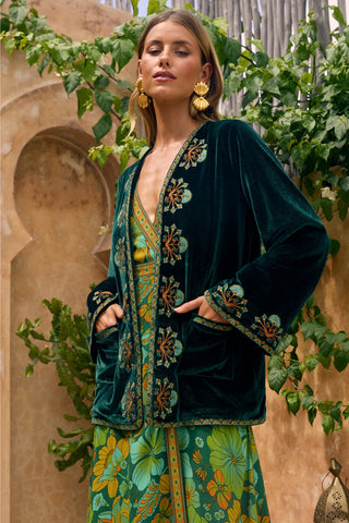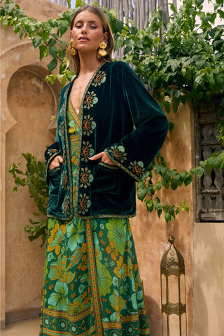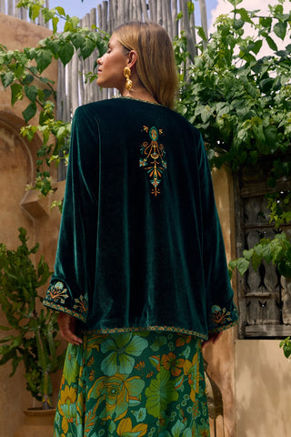 - Made in Emerald velvet. Outer: 95% Polyester 5% Spandex Lining: 100% Polyester.