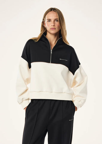 - Relaxed fit zip neck sweater
